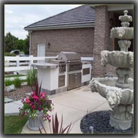 Outdoor Kitchens Welcome to the newest trend in cooking; outdoor kitchens. Sometimes called grill islands, these outdoor entertainment centers are the perfect product for people who enjoy hosting barbeques. Unlike cart model grills, outdoor kitchens have more food preparation space, which means less running in and out of the house for ingredients. Sinks, refrigerators, drawers, ice-makers, cabinets and even ovens can all be built into outdoor kitchens for added convenience. |
